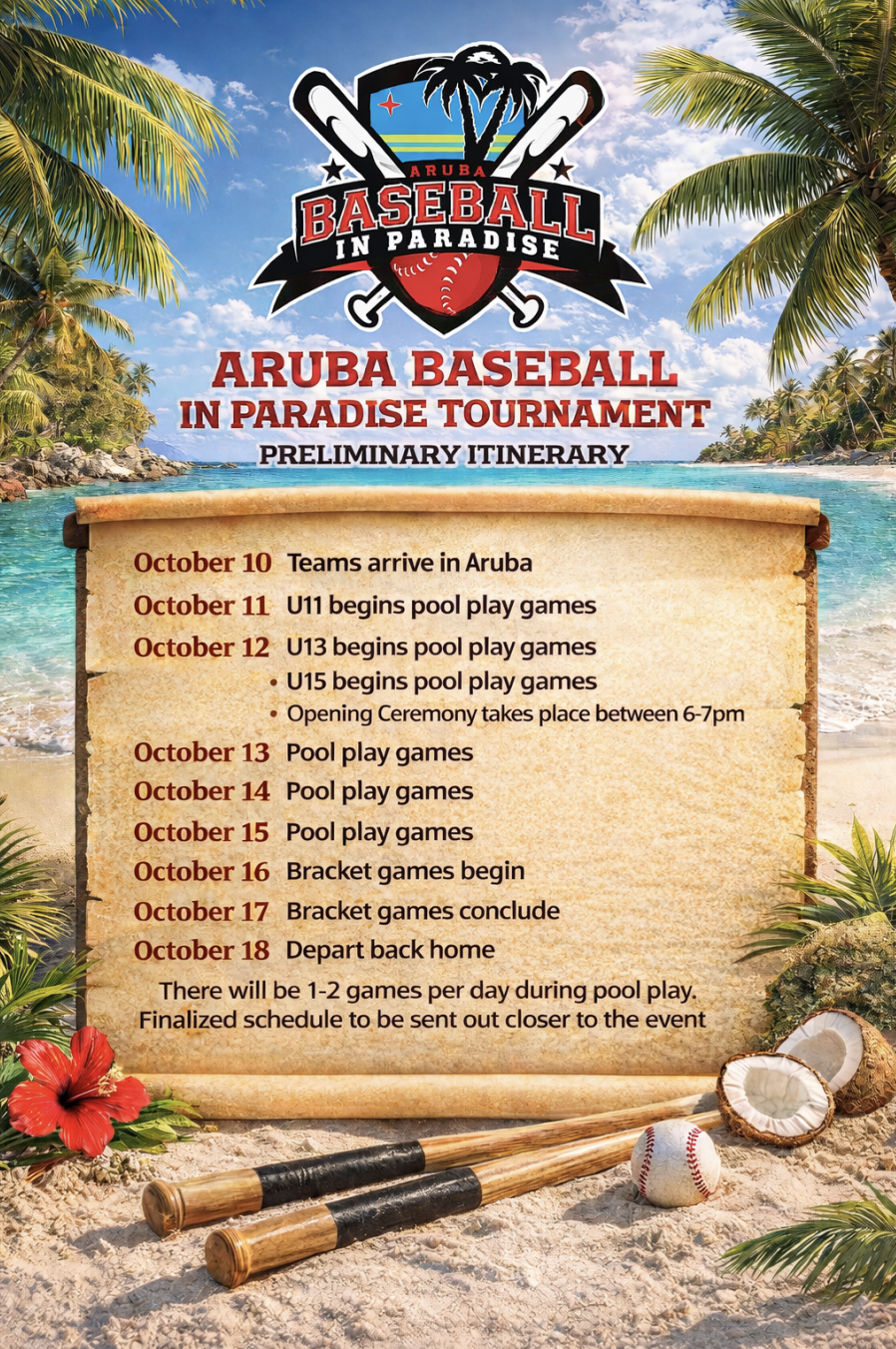 The Aruba International Baseball Tournament brings together elite youth teams from around the world for a week of high-level competition in one of the most beautiful settings on earth.