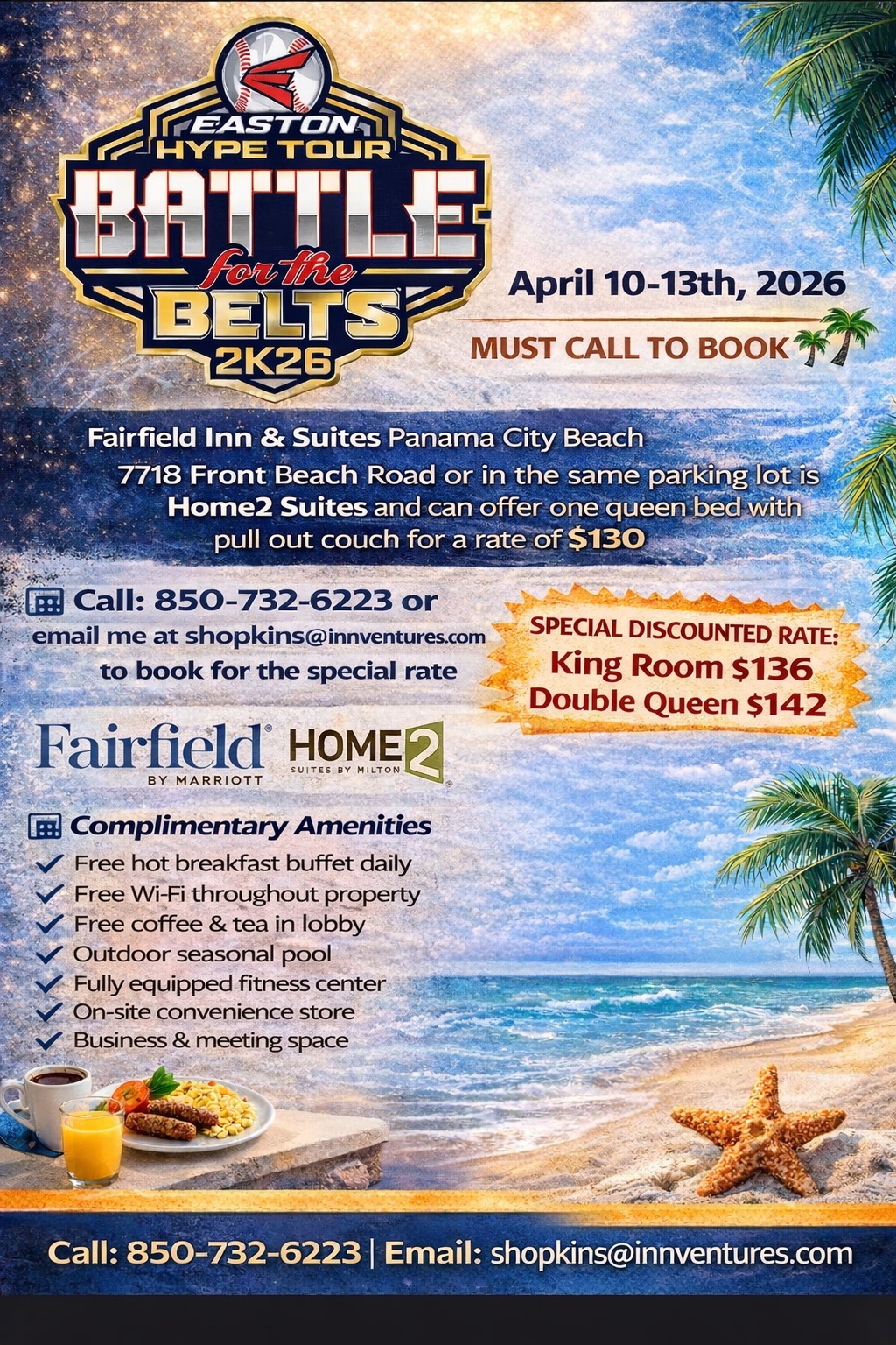 | Publix Sports Park | 50 Chip Seal Pkwy, Panama City Beach, FL, 32407 | Apr 11-12 | Find Hotels |