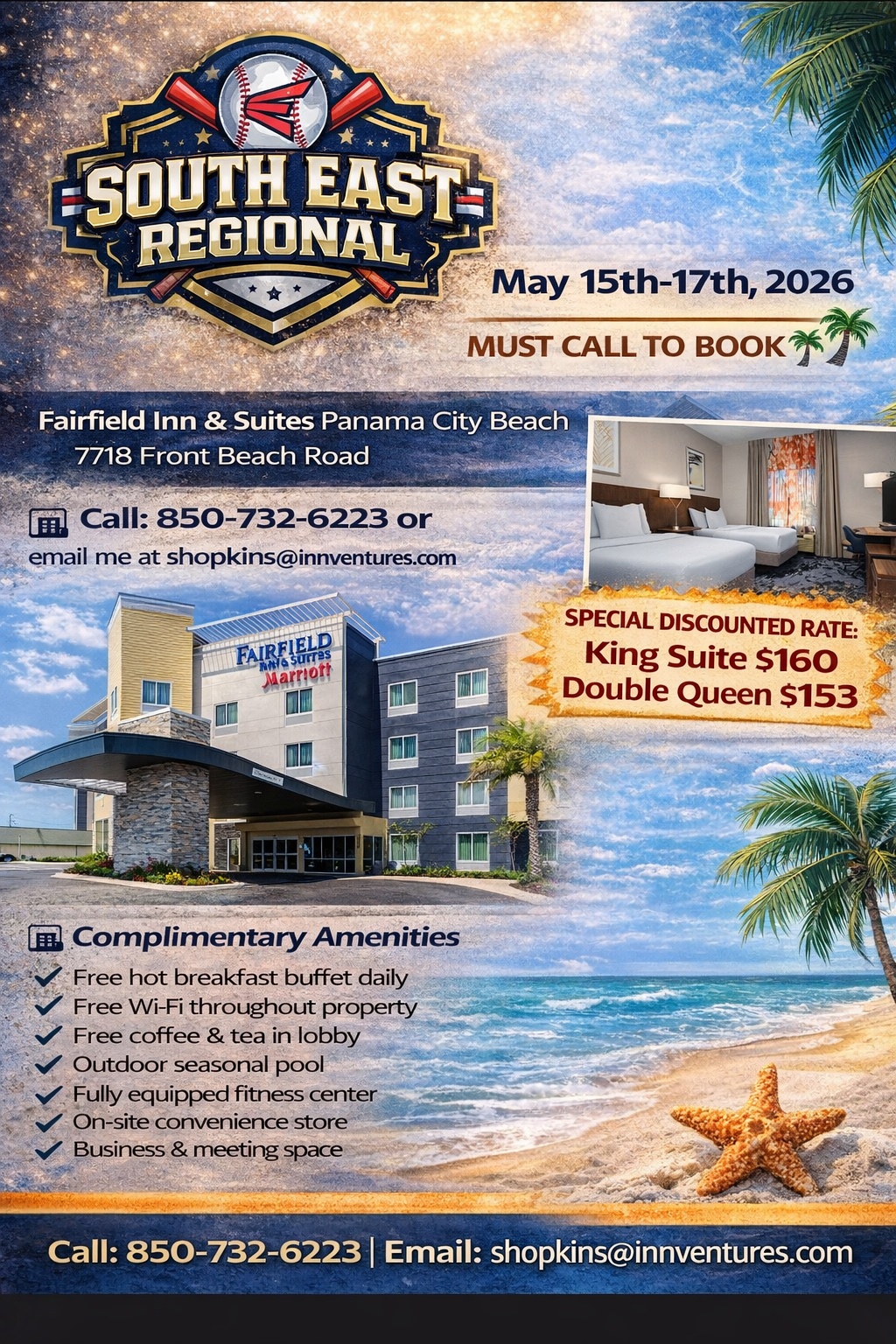 | Publix Sports Park | 50 Chip Seal Pkwy, Panama City Beach, FL, 32407 | May 16-17 | Find Hotels |